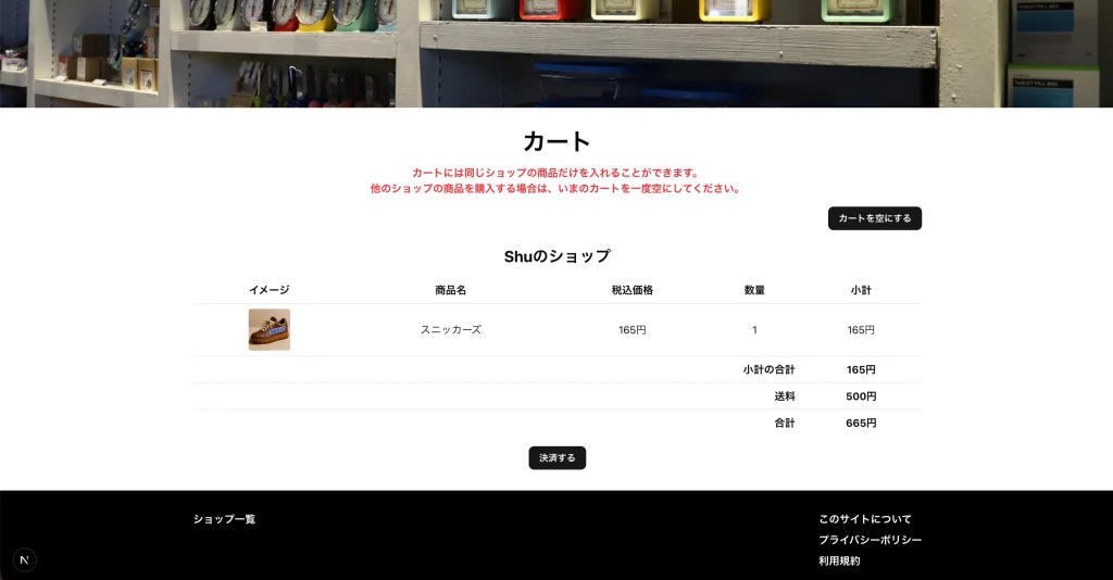 ショップごとに決済するように設計しました。