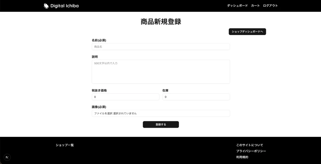 商品の新規登録フォームが使えるようになります。